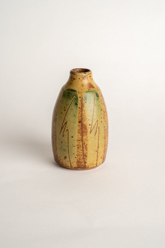 Prickwillow Studio Pottery Bud Vase Hand Thrown with Liquid Brush Decoration