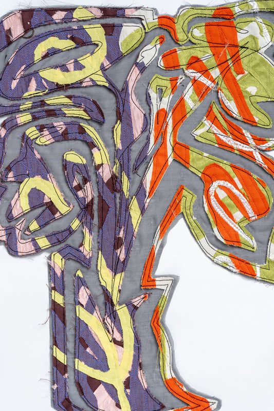 'Brushstroke & Scribble' Appliqué and Embroidered Linen and Silk Original Artwork