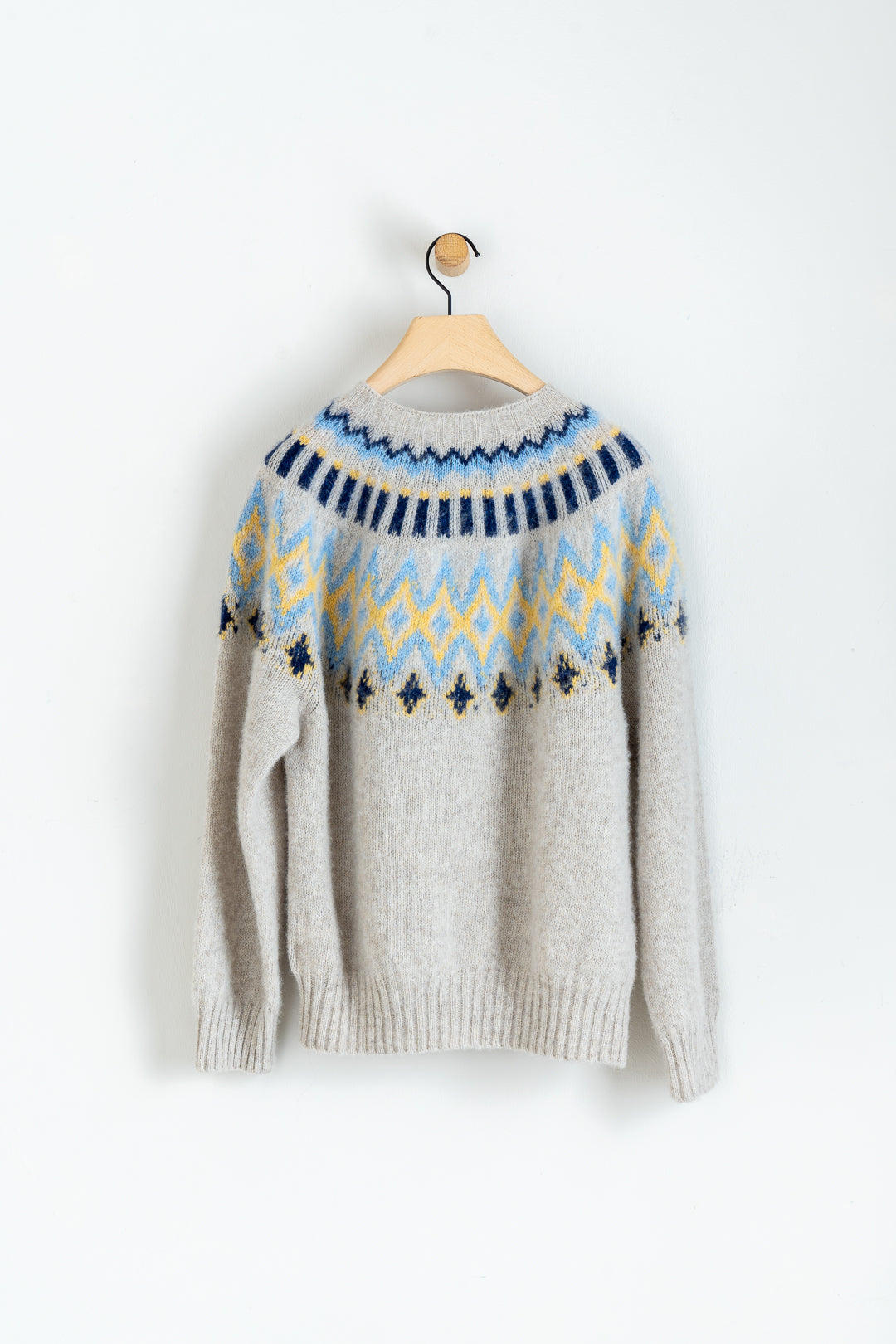 With a boxy fit, it's the perfect length to wear with jeans and trousers. Made in Scotland from 100% Scottish Shetland Wool, the knit is free from synthetic fibres, so is naturally breathable and durable.