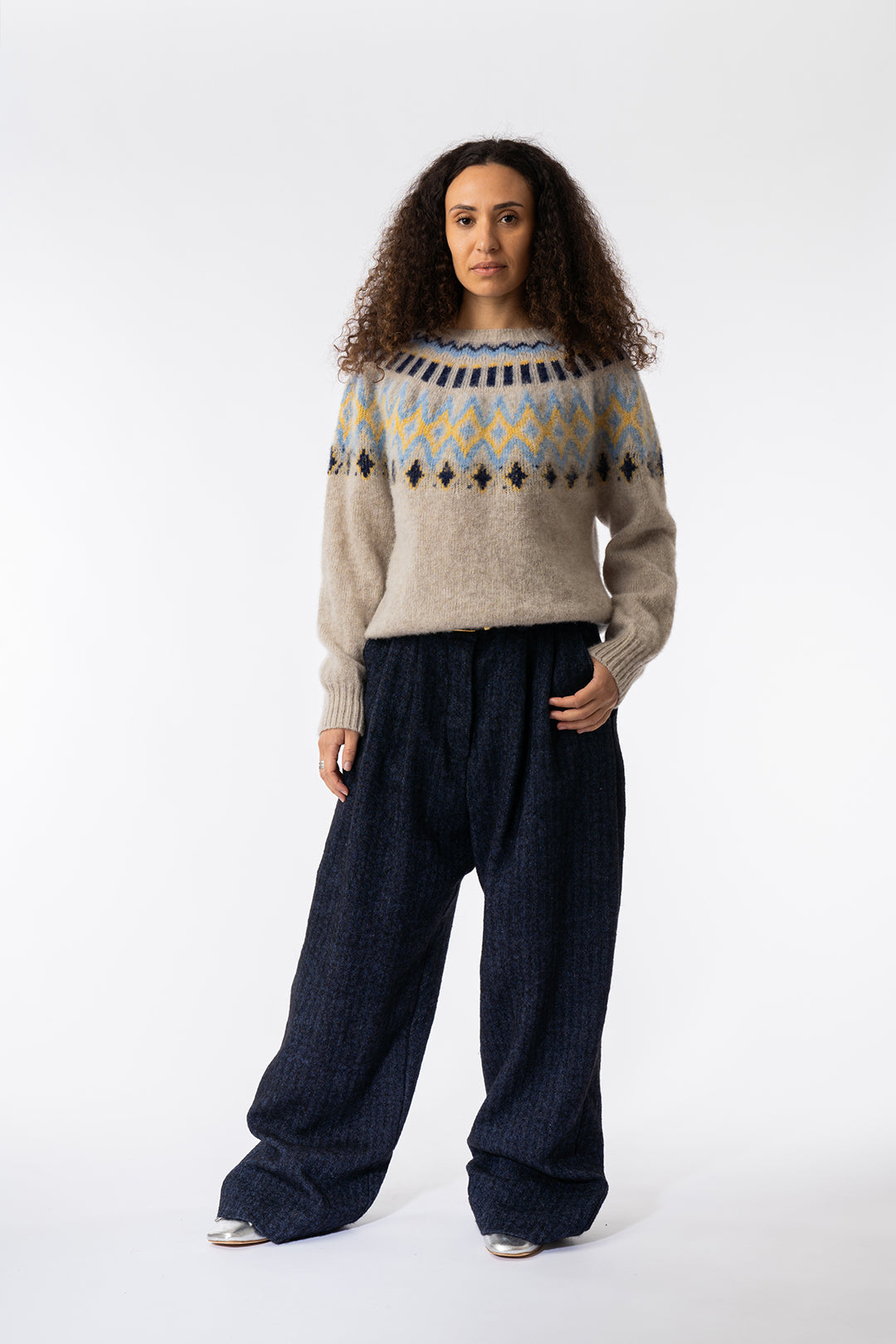Each of Howlin’s garments is made lovingly in either Scotland, Ireland or Belgium by skilled craftspeople using the highest quality yarns possible, where respect towards the rich weaving heritage of each country is paid, hybridising old and new technologies and designs. Working closely with family-run wool businesses in these locations, Howlin’ celebrates the small but mighty people that keep conscious knitwear manufacturing alive.