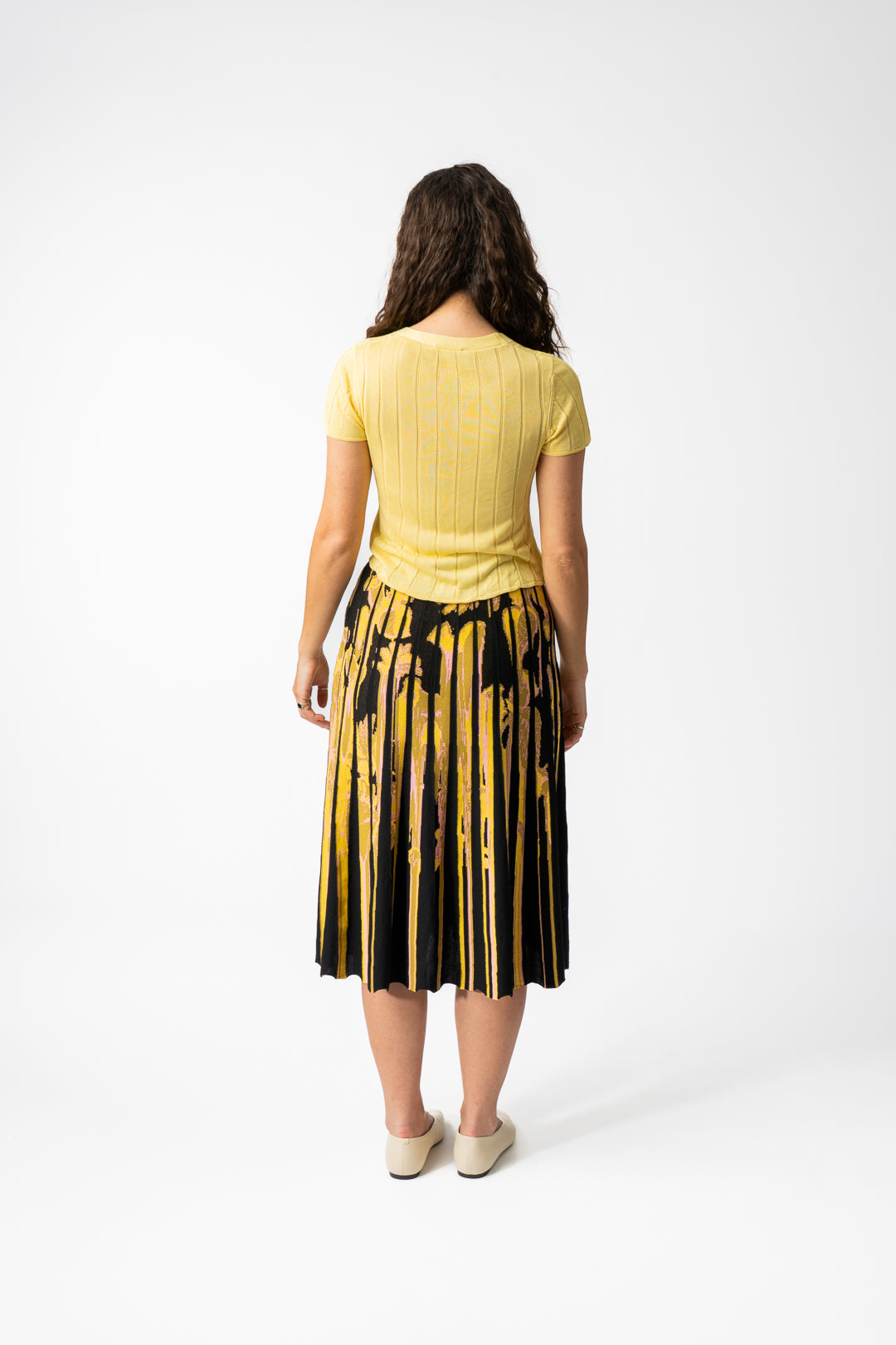 Camilla Bloom is a brand that prioritises ethical production patterns intrinsically, with this skirt being made in small quantities in Camilla’s Spanish studio. Knitted from 100% organic cotton, Camilla ensures the minimisation of waste by frequently working with knit fabrics, as these materials are readily knitted to the shape and size that they need to become, rather than cutting a pattern from a reel of fabric.