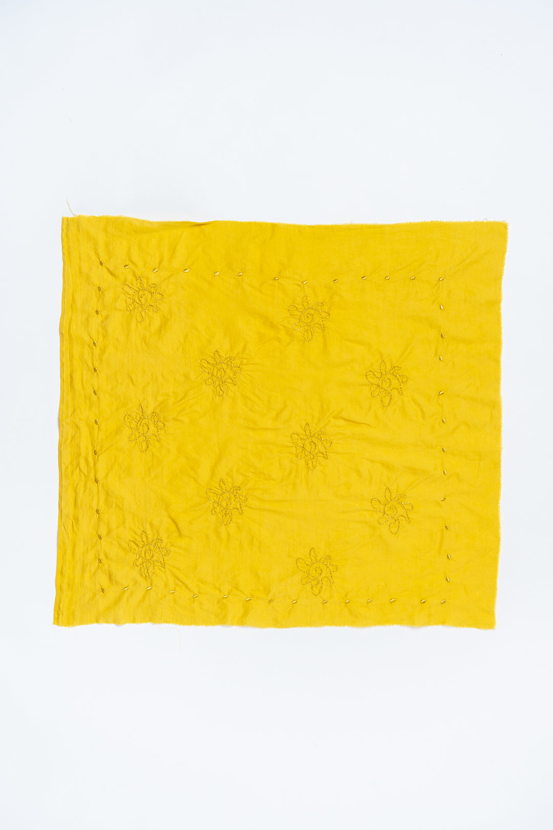 'Sun' is a wall hanging made from Silk which is hand embroidered. A combination of summery bright colours and featuring Sweeney's trademark 'Rough Edges' - the namesake of her solo exhibition at MIMMO Studios.