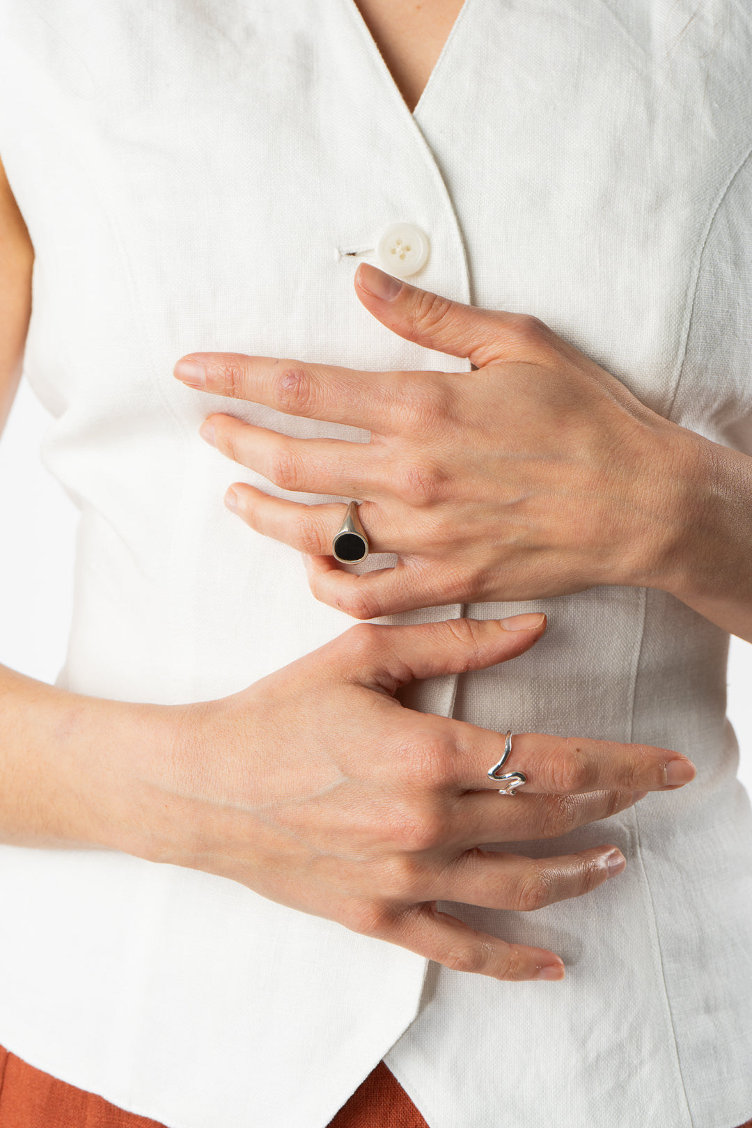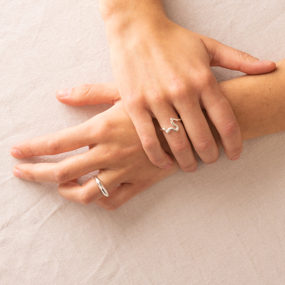 Made up of playful silver swirls and set in recycled silver, this ring is ideal for stacking with your favourite chunky pieces. The Emory is designed with comfort in mind, fitting snugly and smoothly over your finger as a minimalistic piece made to be reached for every day.