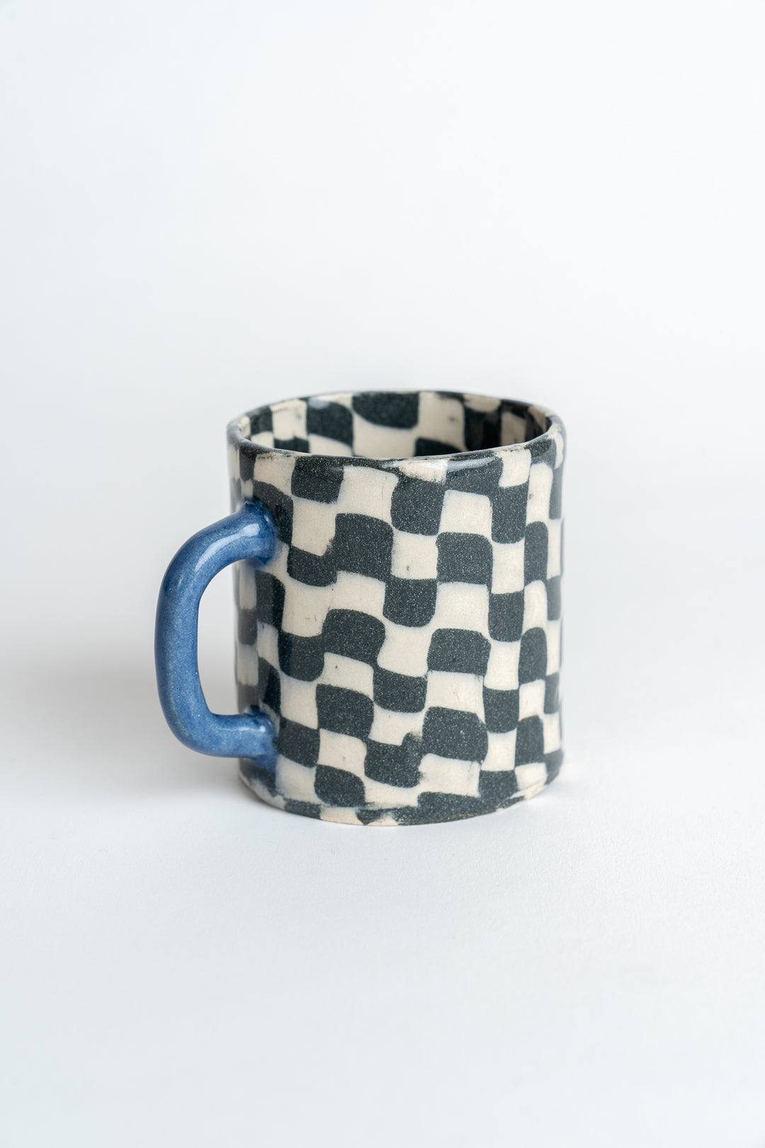 Made using a technique called 'nerikomi' - a process of stacking, cutting and rolling together pieces of clay to create patterns, the Checkerboard Mug is made by hand in South London. Measuring a sweet 11cm tall, the mug is the perfect size for a Flat White.
