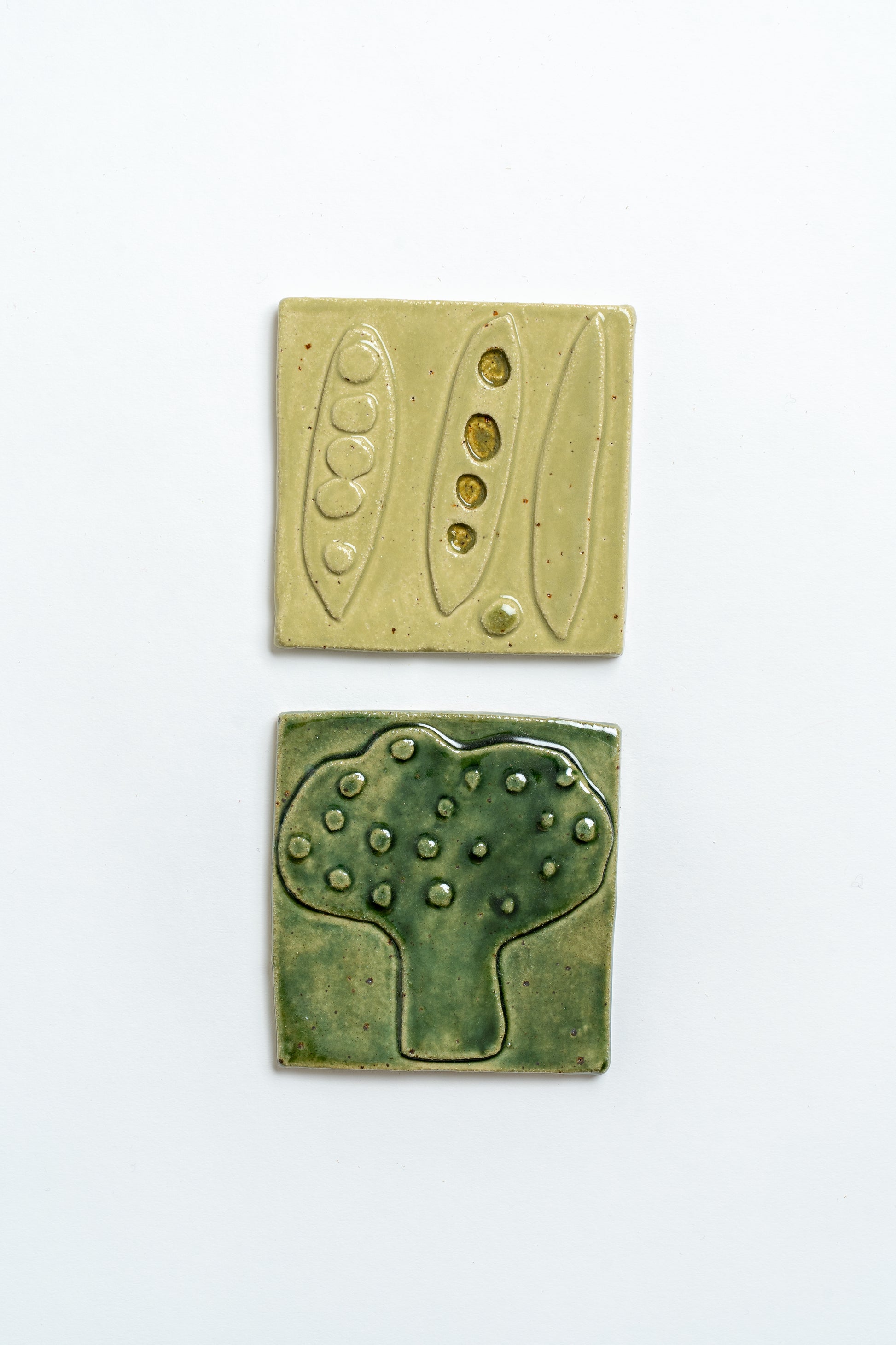 Hand Painted 'Brocolli' Ceramic Tile Green