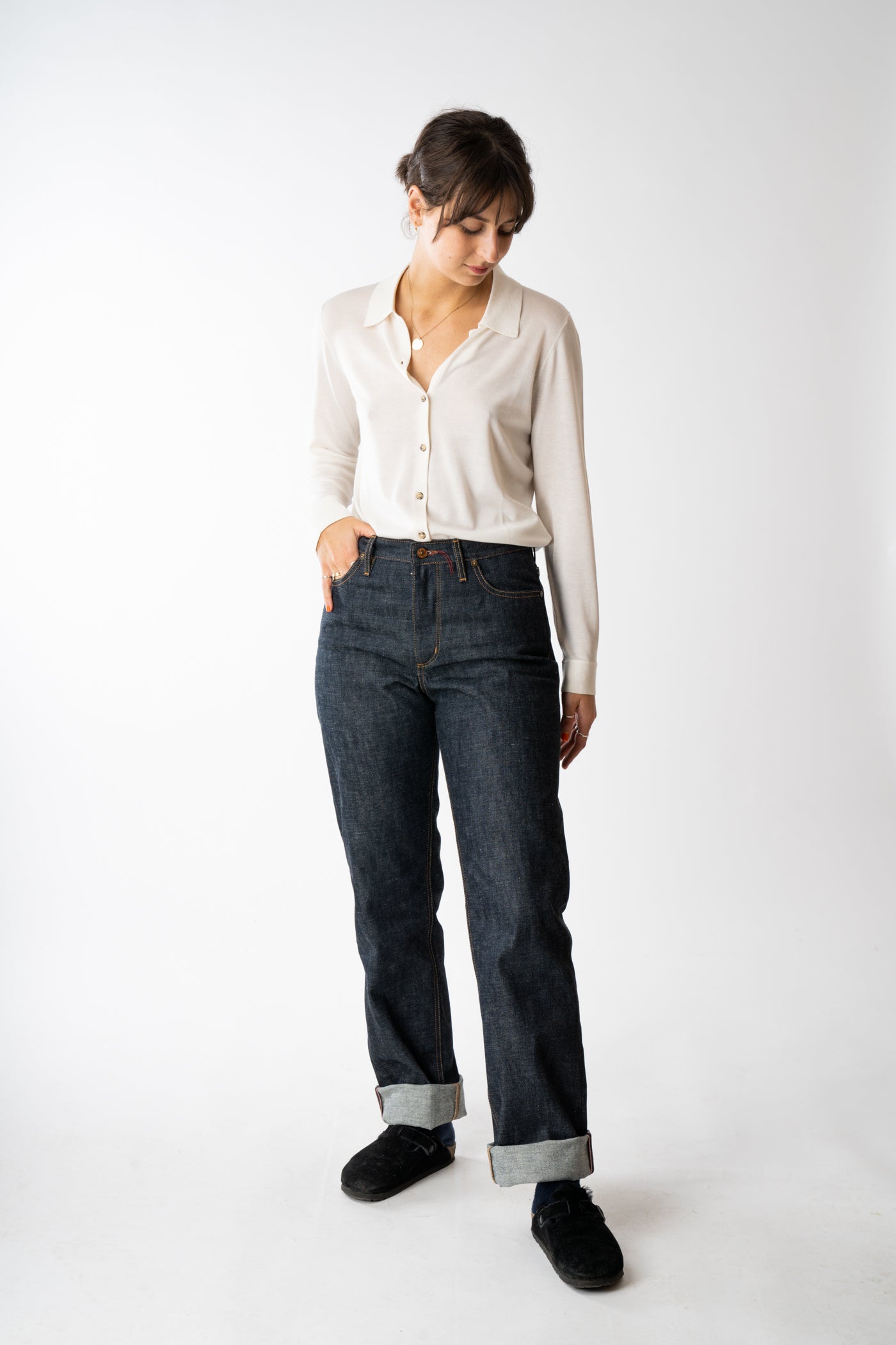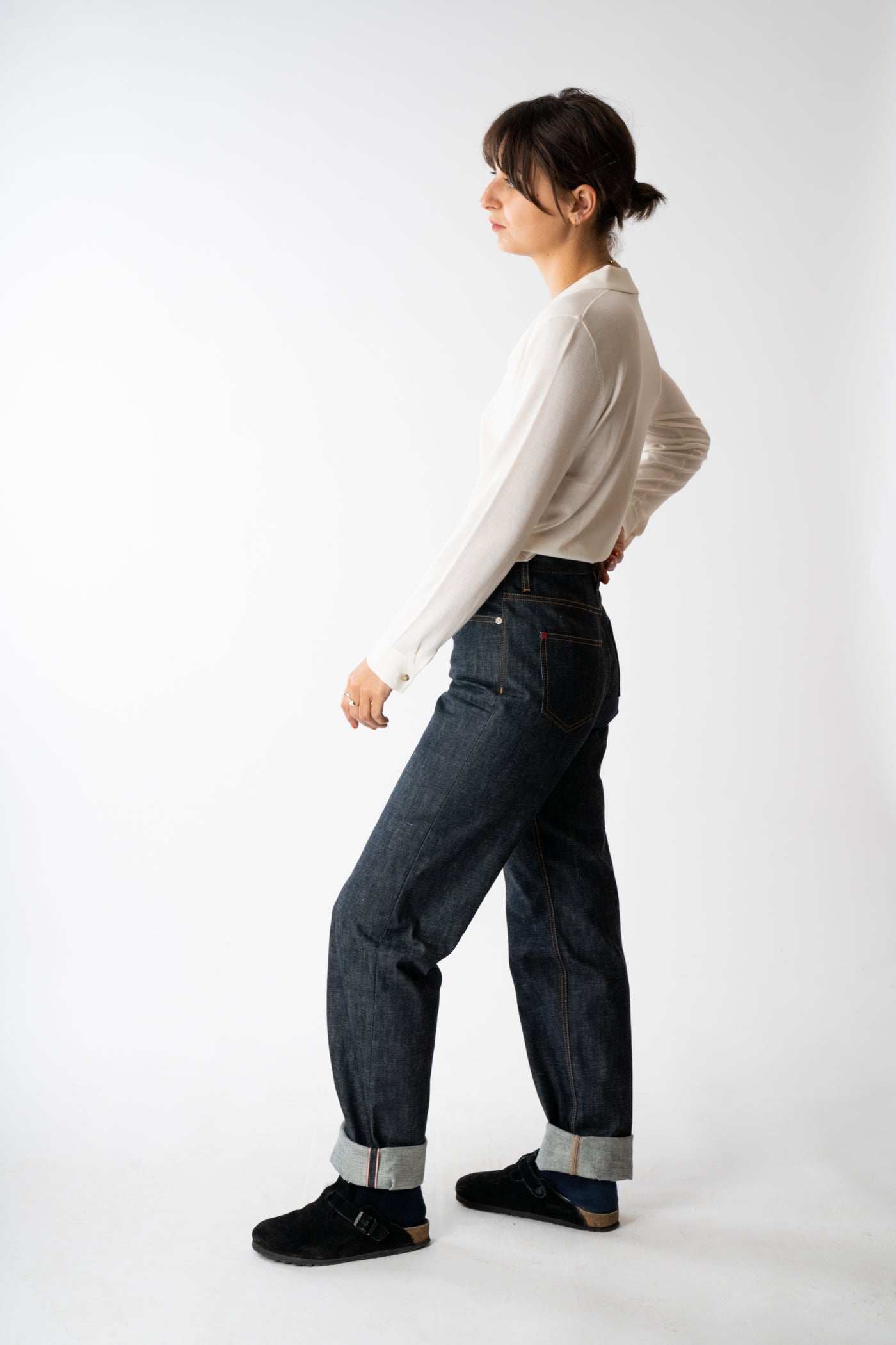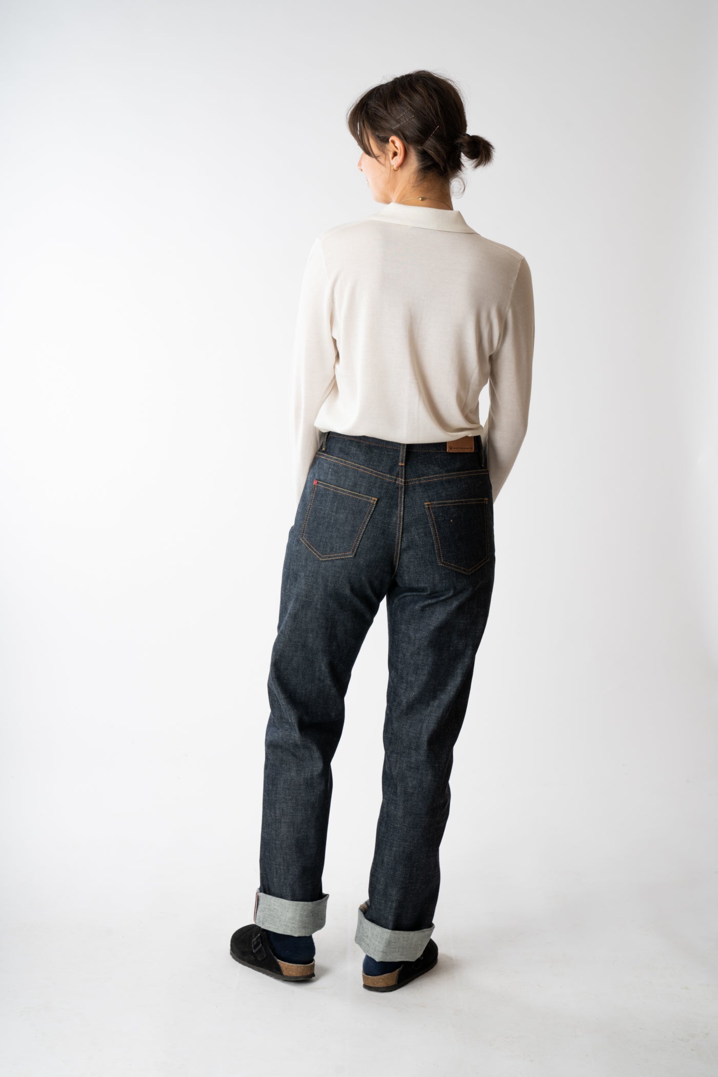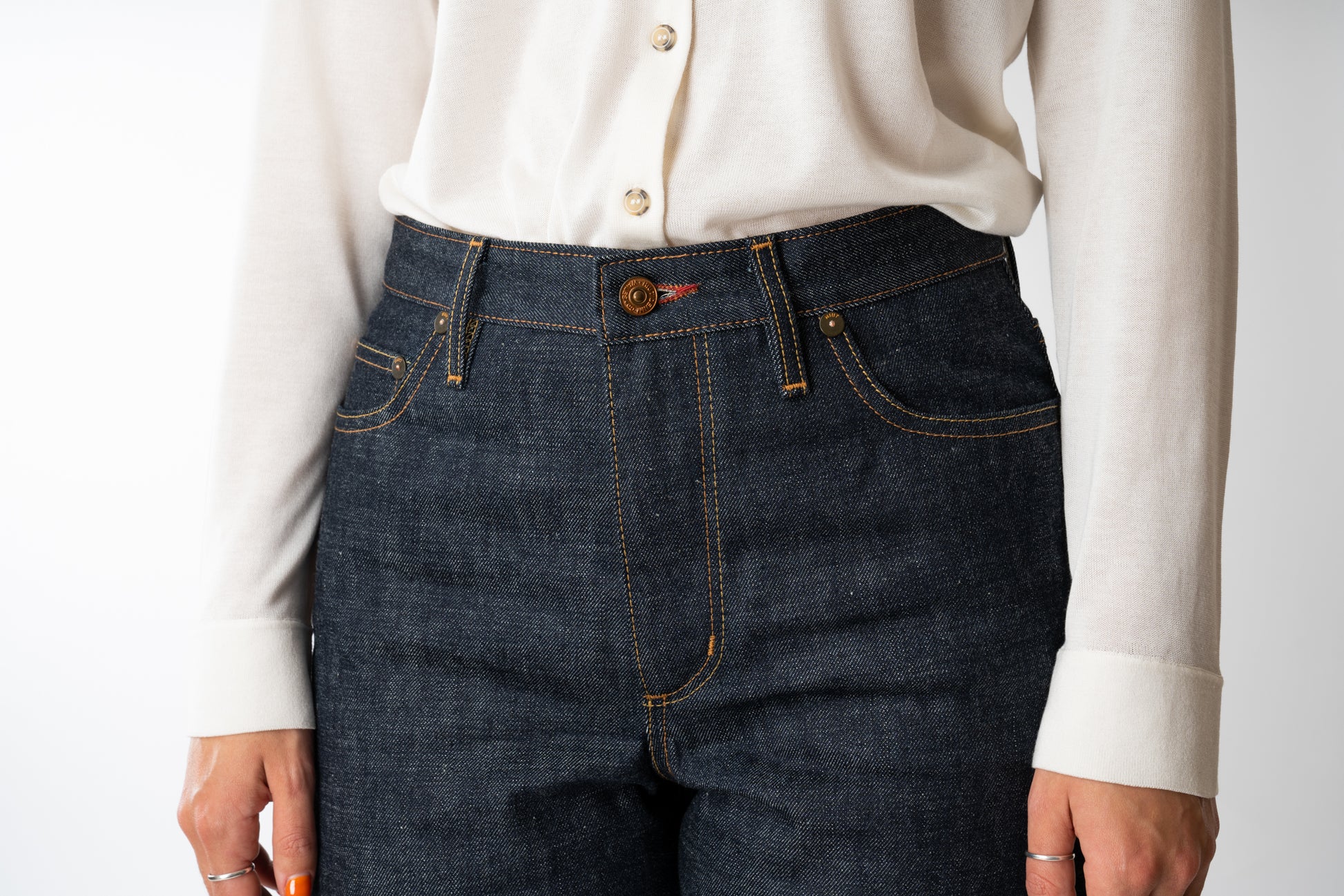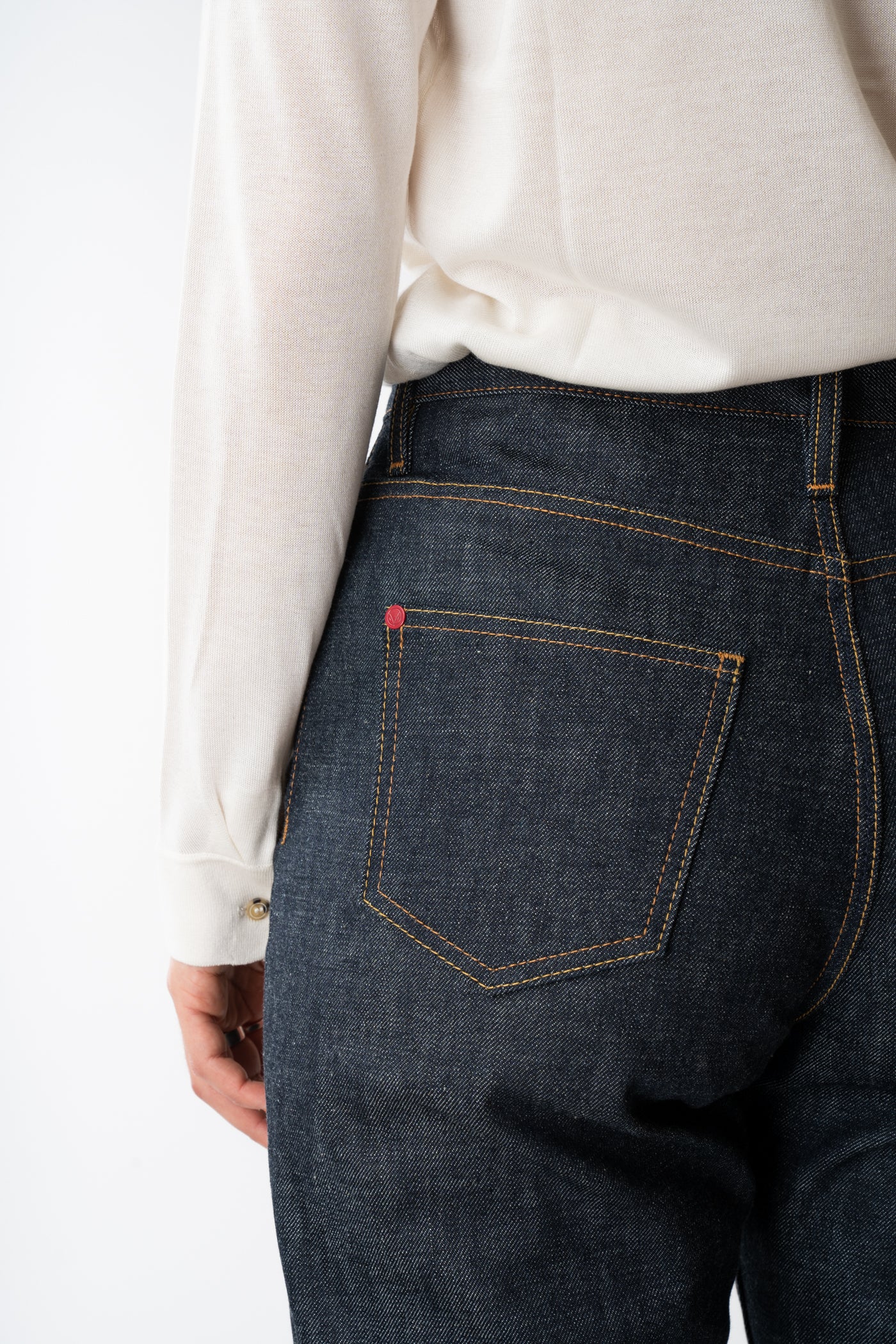 The Peggy Selvedge is made from Red cast indigo 14.5oz unwashed raw selvedge denim. This jean is in the ‘No Wash Club’ and made from 100% cotton Kuroki Denim mill in Japan. It features the easily identifiable Red line selvedge.