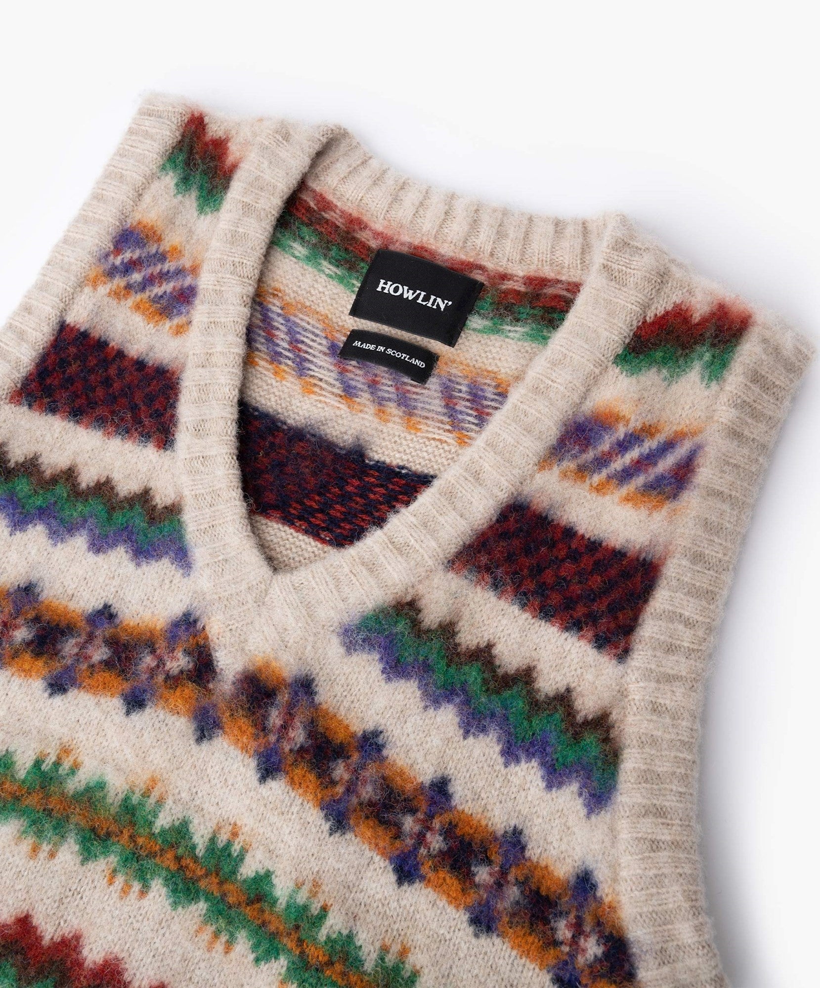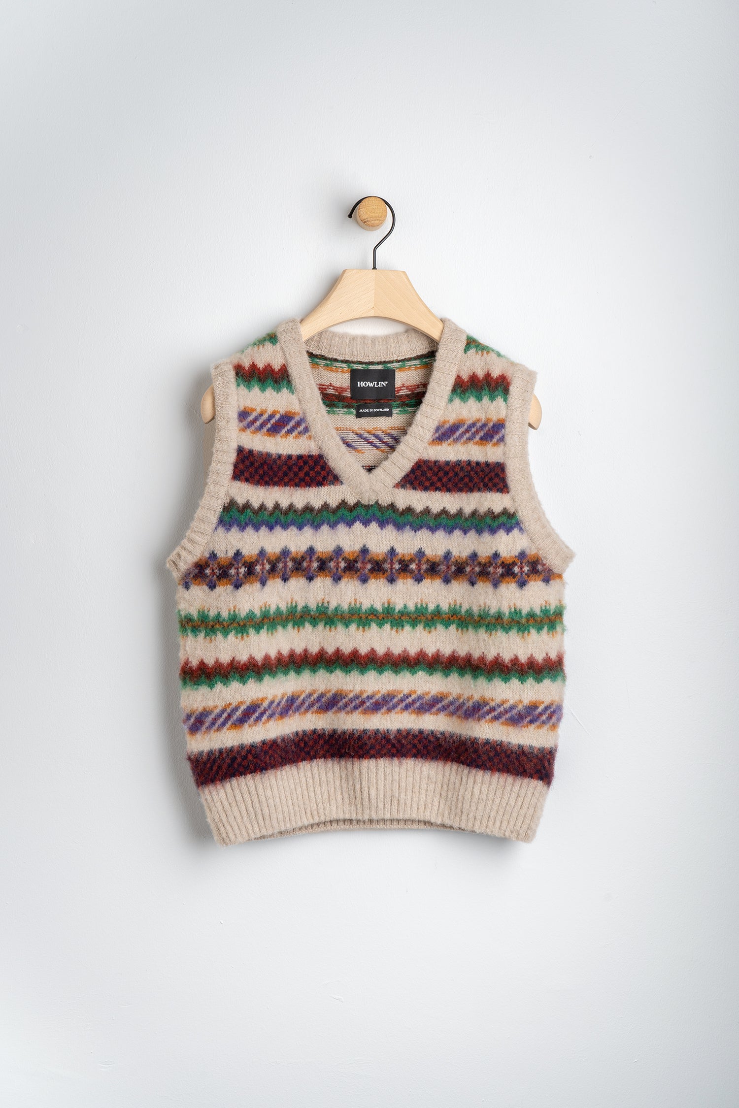 Each of Howlin’s garments is made lovingly in either Scotland, Ireland or Belgium by skilled craftspeople using the highest quality yarns possible, where respect towards the rich weaving heritage of each country is paid, hybridising old and new technologies and designs. Working closely with family-run wool businesses in these locations, Howlin’ celebrates the small but mighty people that keep conscious knitwear manufacturing alive.