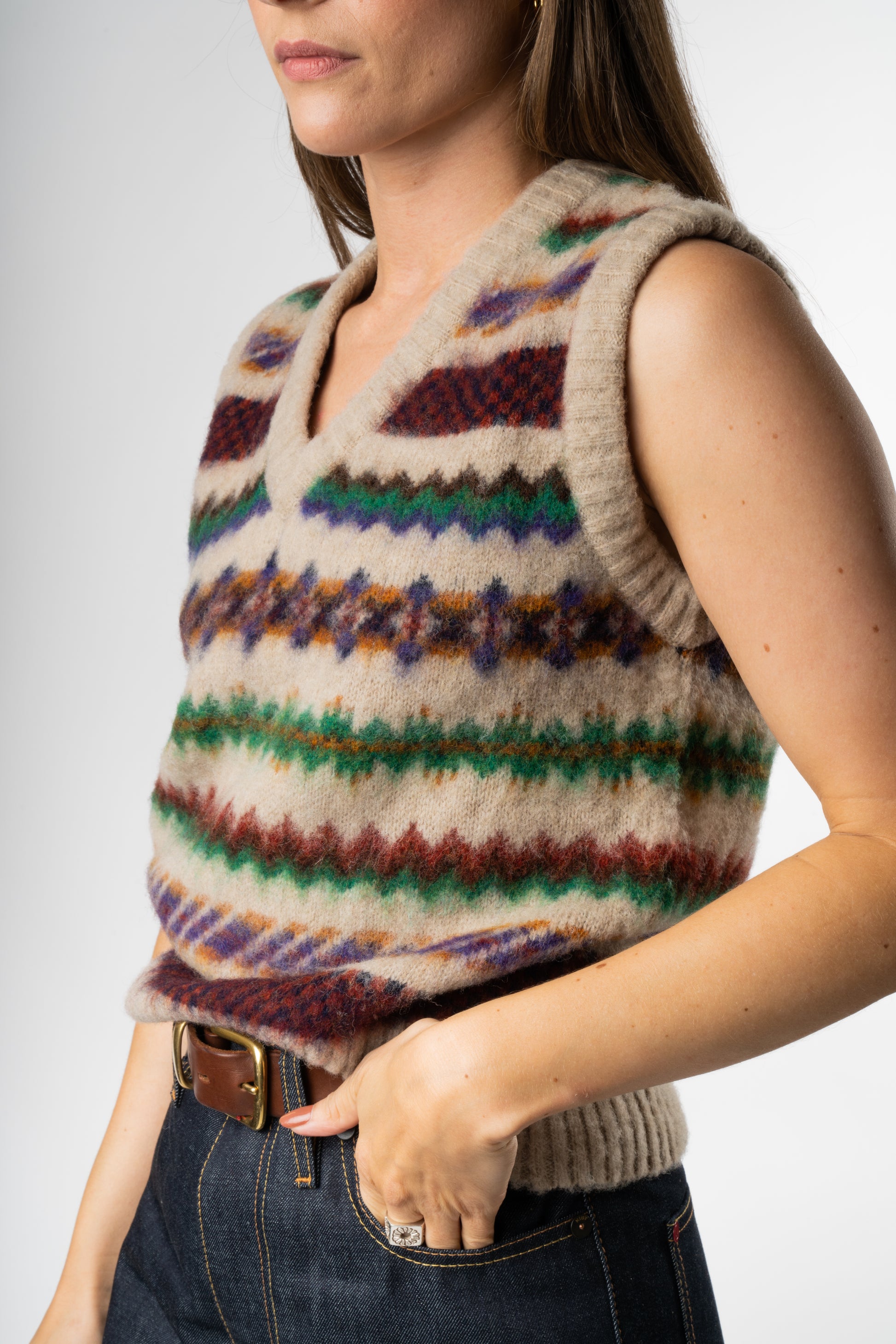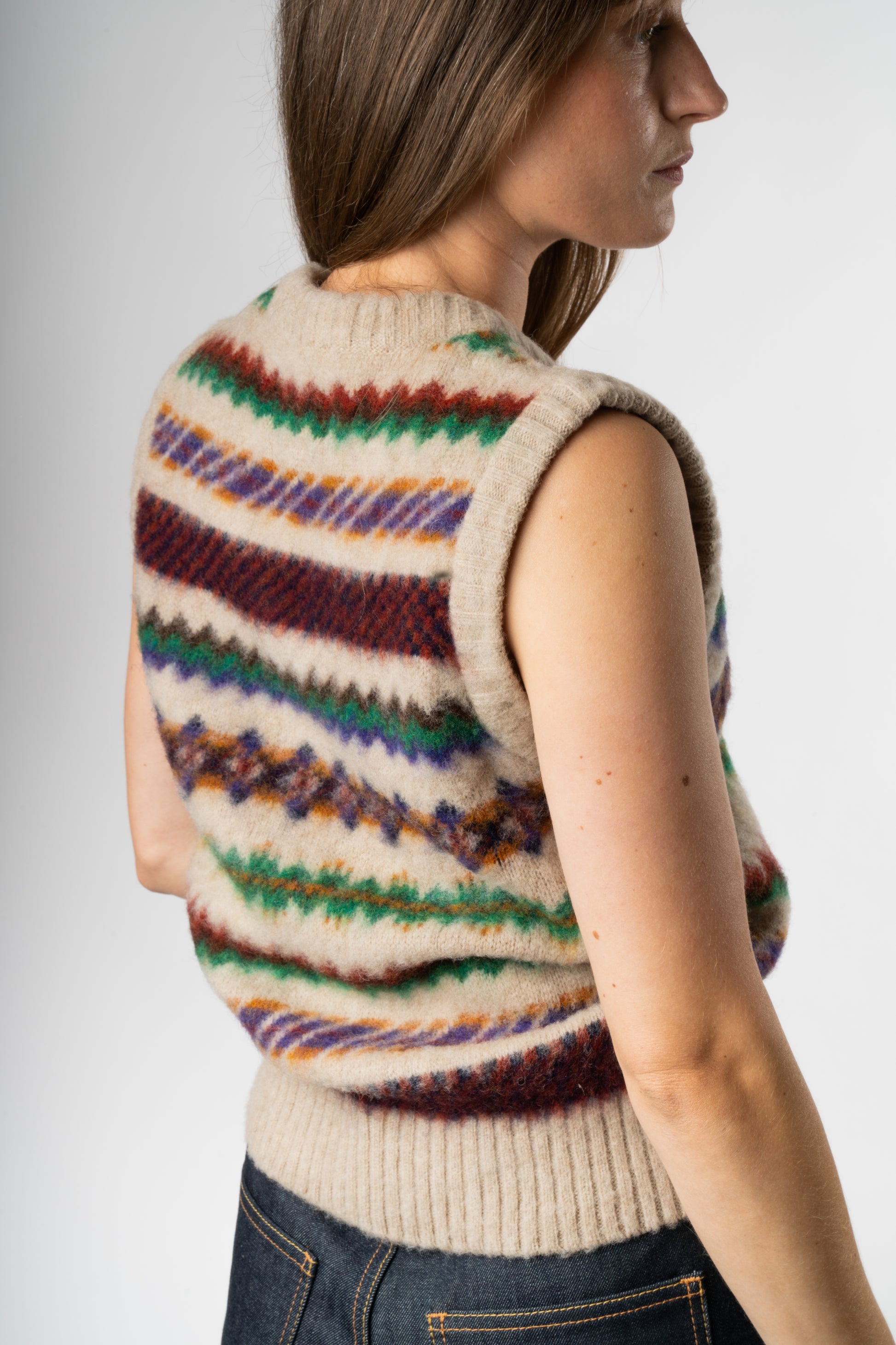 Wearable nostalgia from Winters of the past, Howlin’s Little Woolen Wonder Vest is a cosy essential for lovers of classic autumnal colour palettes and textures.