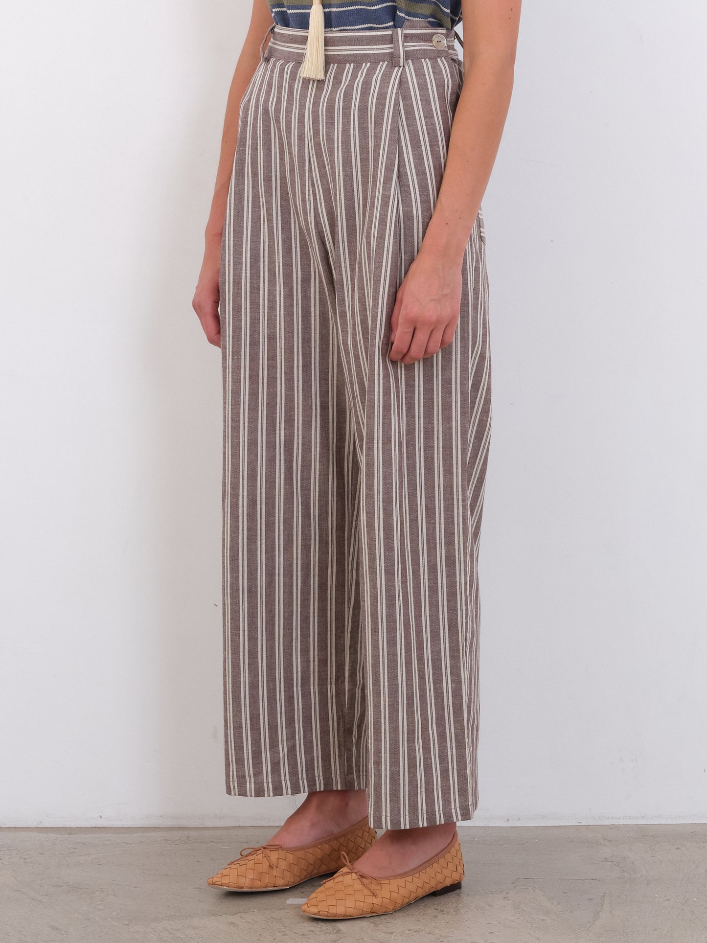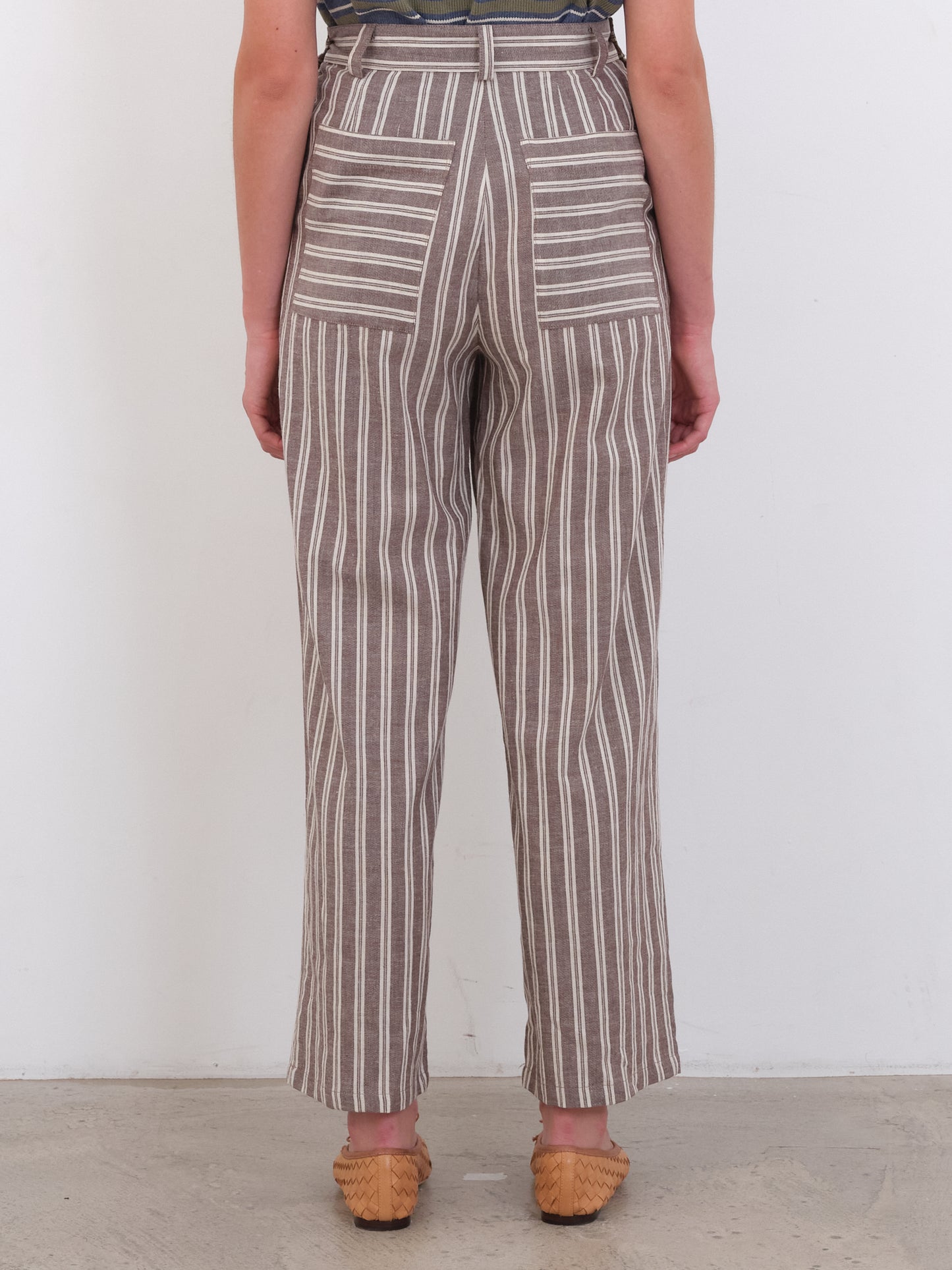 The Georgia Trouser is a perennial style, making its way into each and every Cawley Studio collection. This season, made from a deliciously striped Cotton and Linen blend.