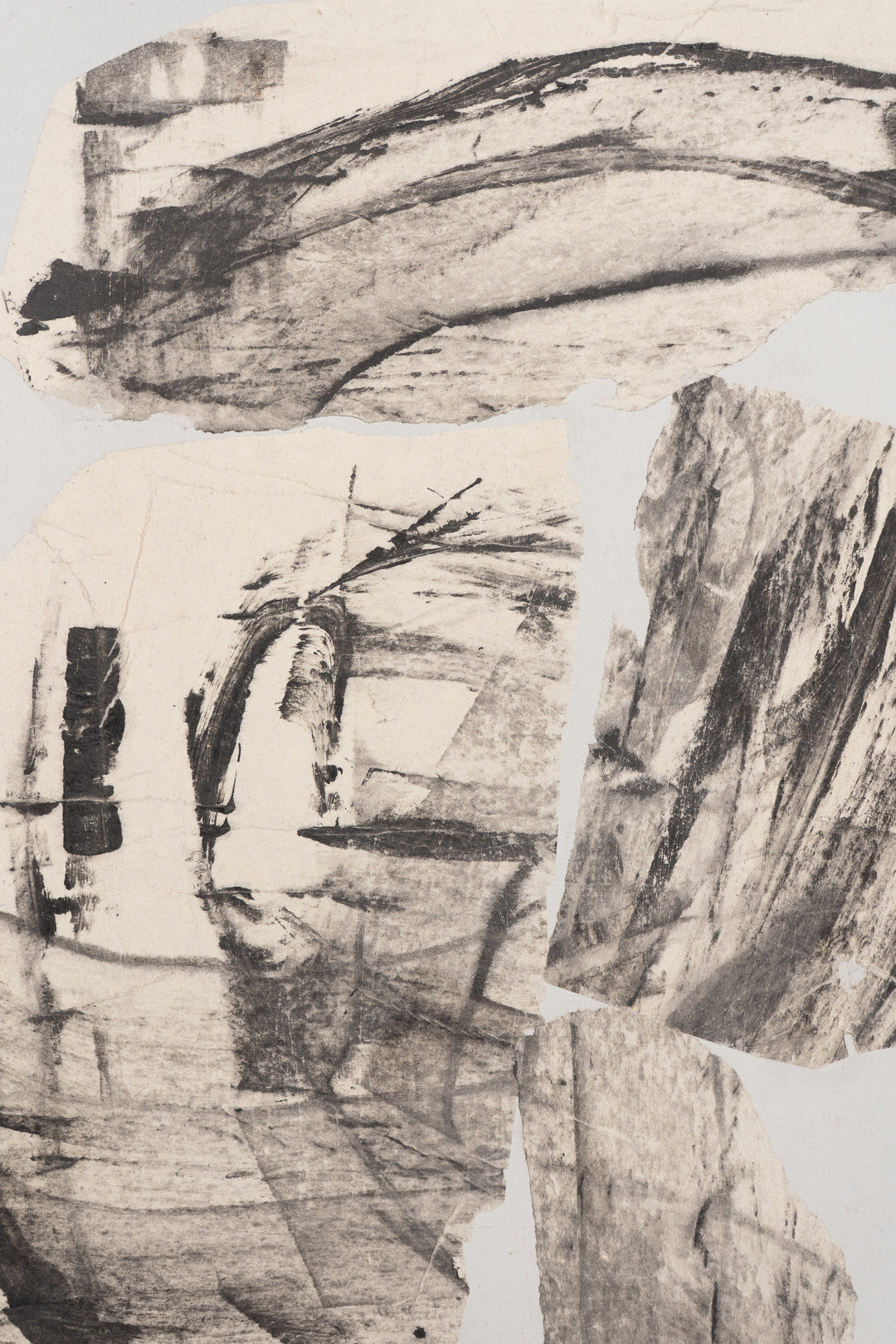 This piece is stratified by layers of shadowed mark-making that intensely dominate the frame, imbuing Maisie’s work with a sense of compelling mystery that makes the piece an ideal accessory to any minimalistic, sophisticated space.