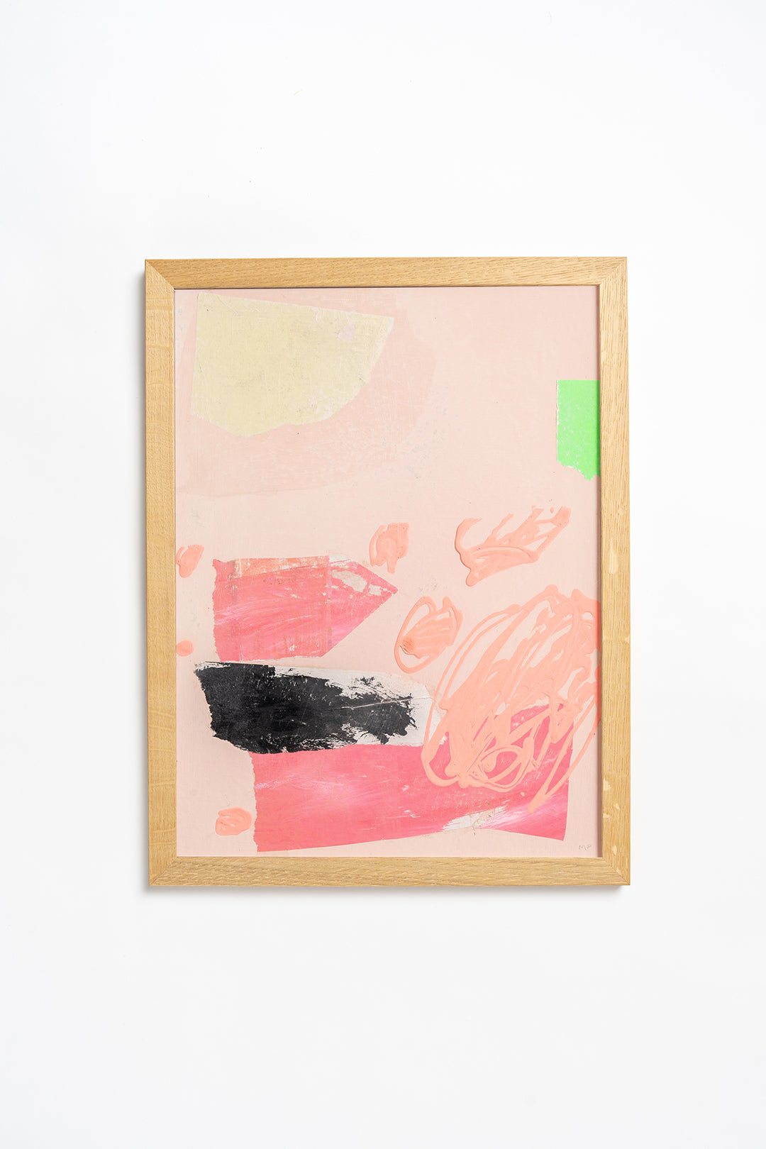Gestural abstraction and experimentation go hand in hand in Maisie Pack’s ‘Rosy Retrospection’, an original mixed media work consumed by expression and texture.