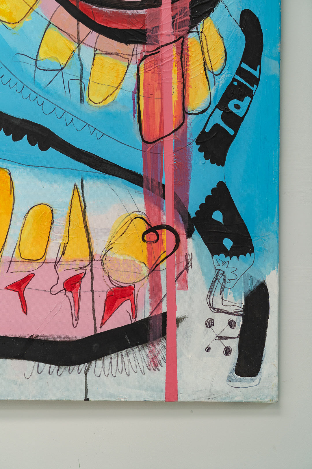 In this large scale work painting on canvas, Sandalls creates an intricate and evocative piece. The more you look at it, the more you discover.
