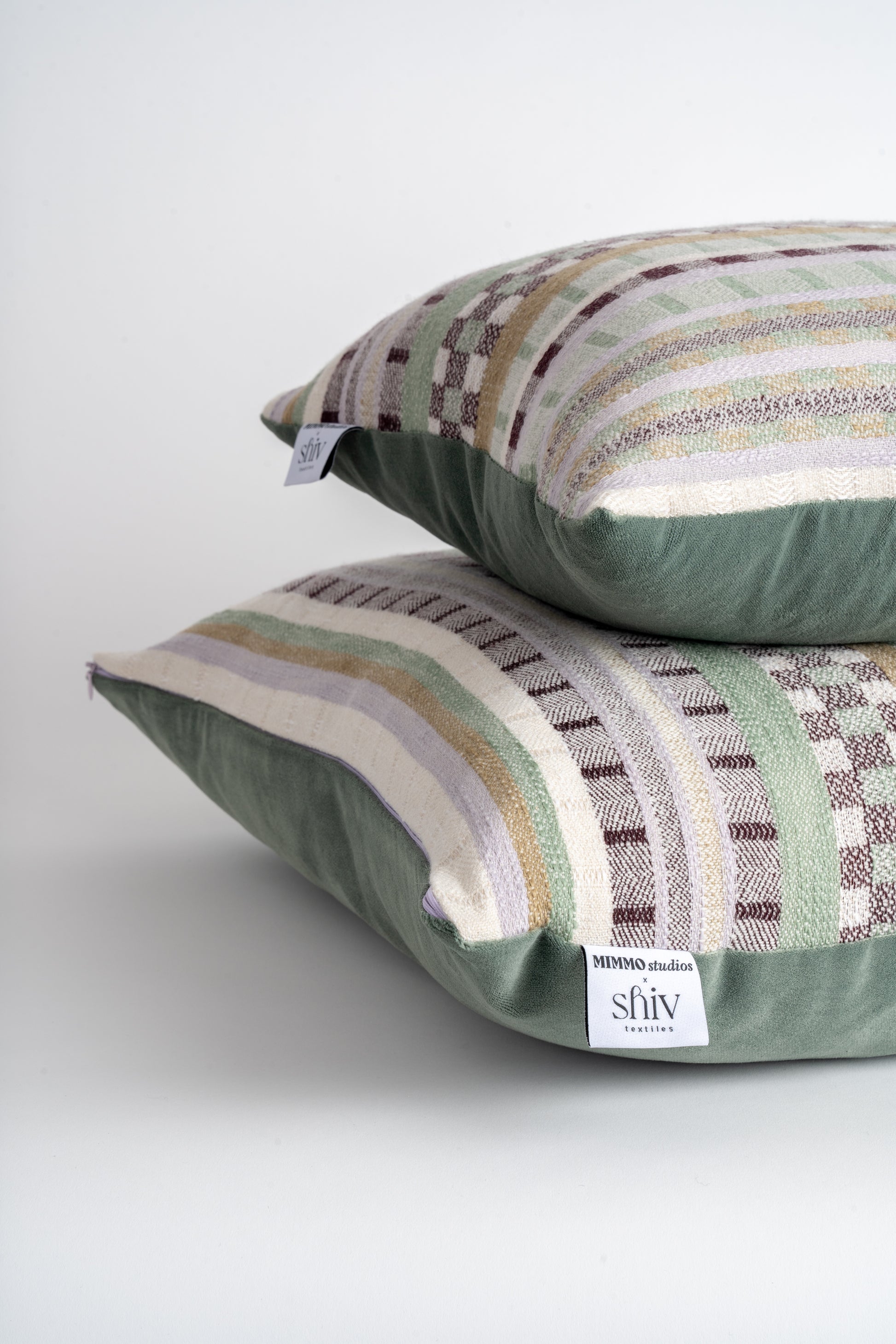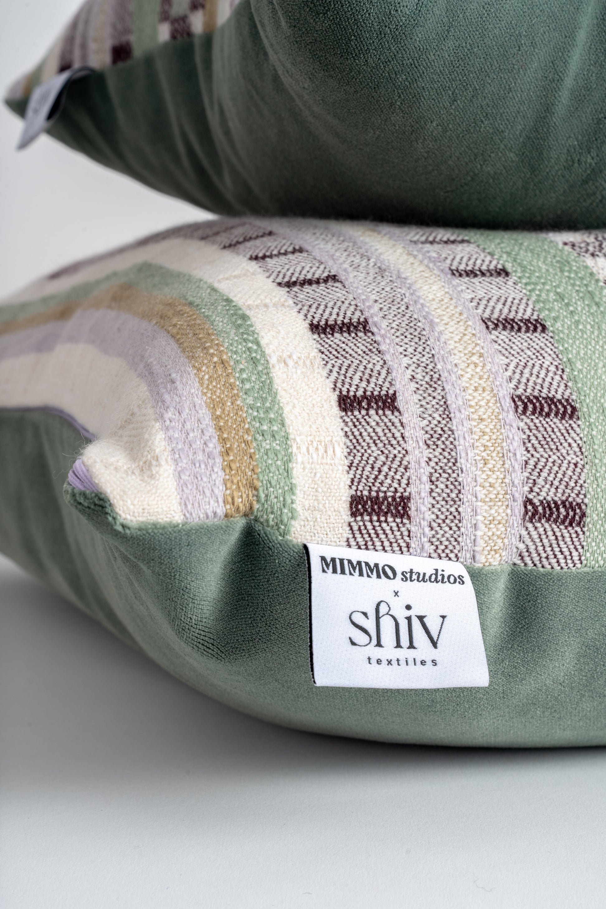 Backed with upcycled sage green velvet, every aspect of the cushion is thoughtfully and ethically crafted.