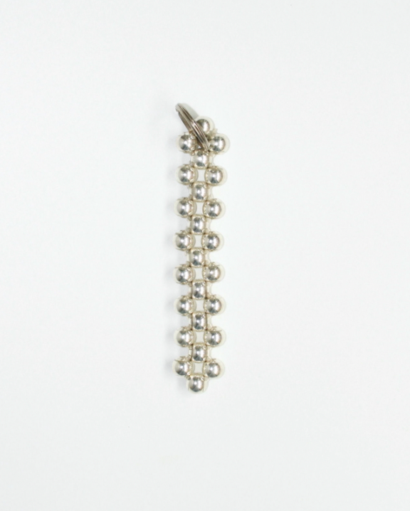 Both tactile and beautiful, the beaded keyring reminds us of New York City cab seats, cast in either stone beads or 925 Sterling SIlver.