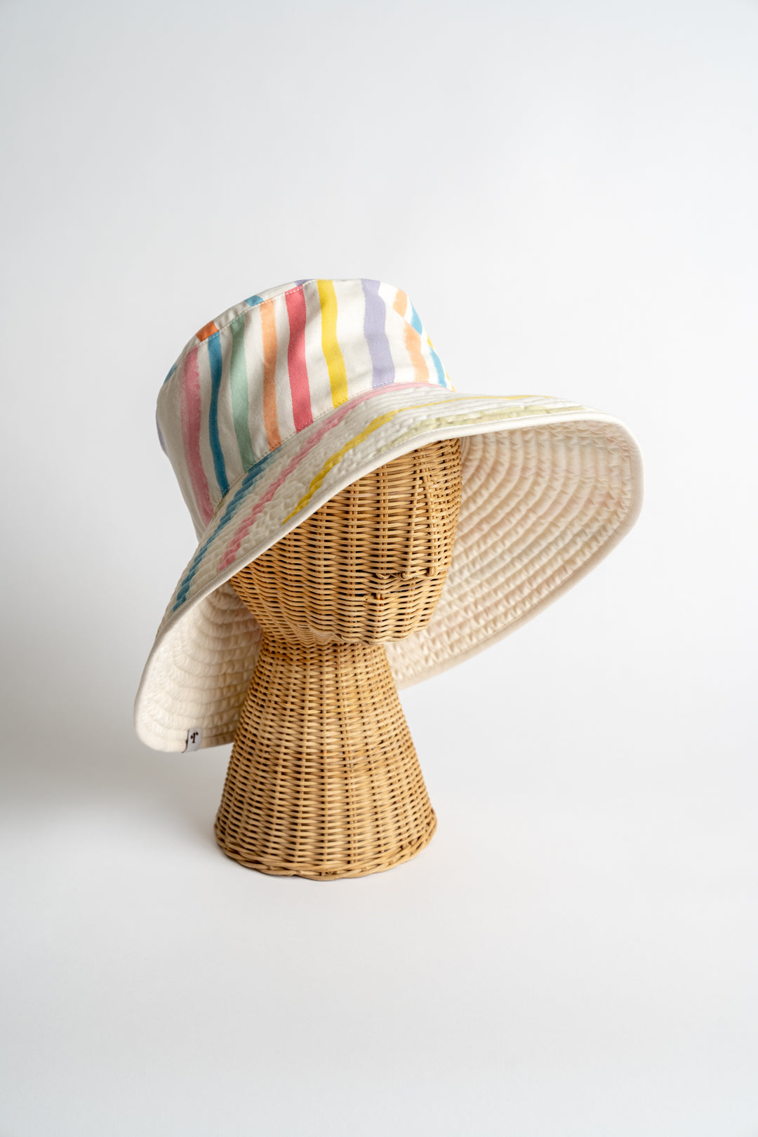 Designed and hand painted in Madrid, the co-founders (and sisters) of Romualda have captured the essence of summer with the Reversible Gran Bucket Hat.