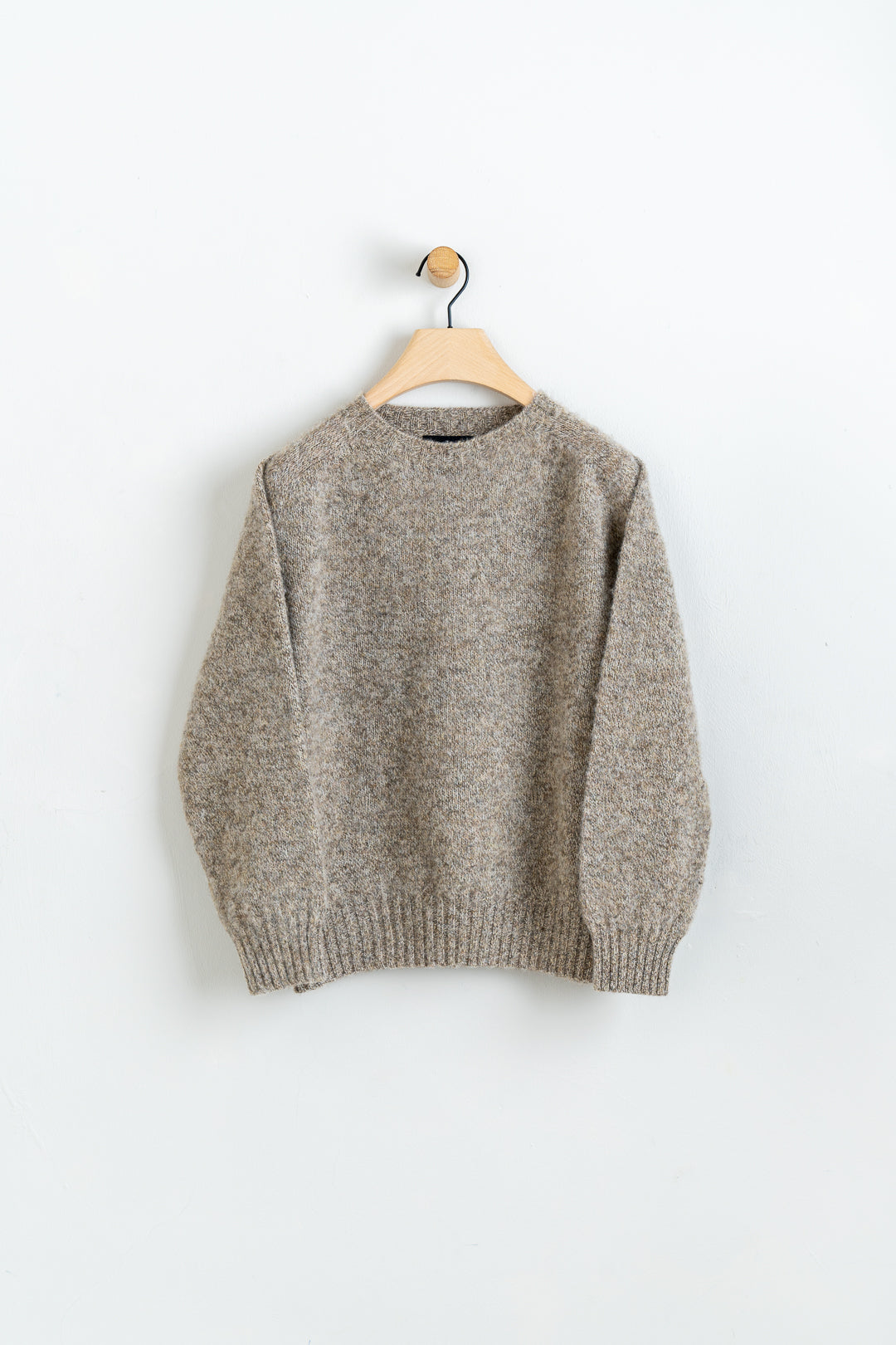 With a boxy fit, it's the perfect length to wear with jeans and trousers. Made in Scotland from 100% Scottish Shetland Wool, the knit is free from synthetic fibres, so is naturally breathable and durable.