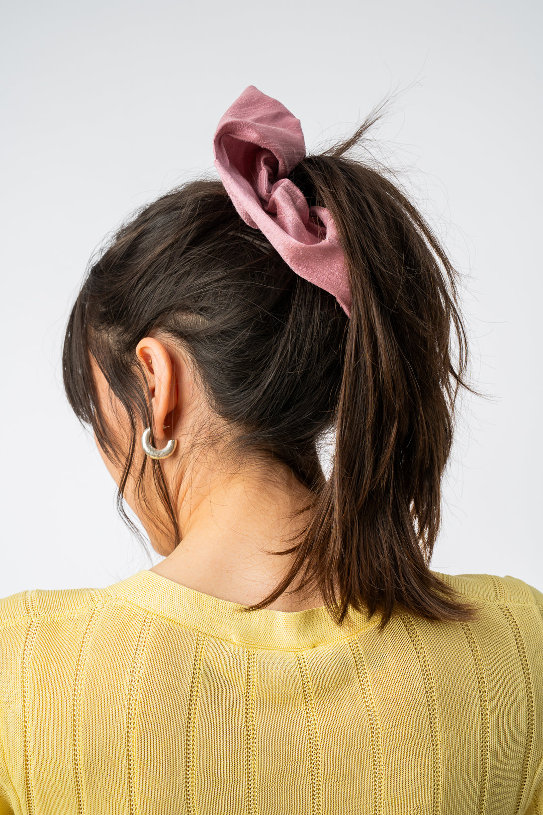 Wear our silk scrunchie around your ponytail or bun, or simply adorn your wrist wearing it as a simple accessory. Layer with our sweet beaded Fiori Bracelet, and wear with our Elisabeth Dress for a shimmering silk outfit.