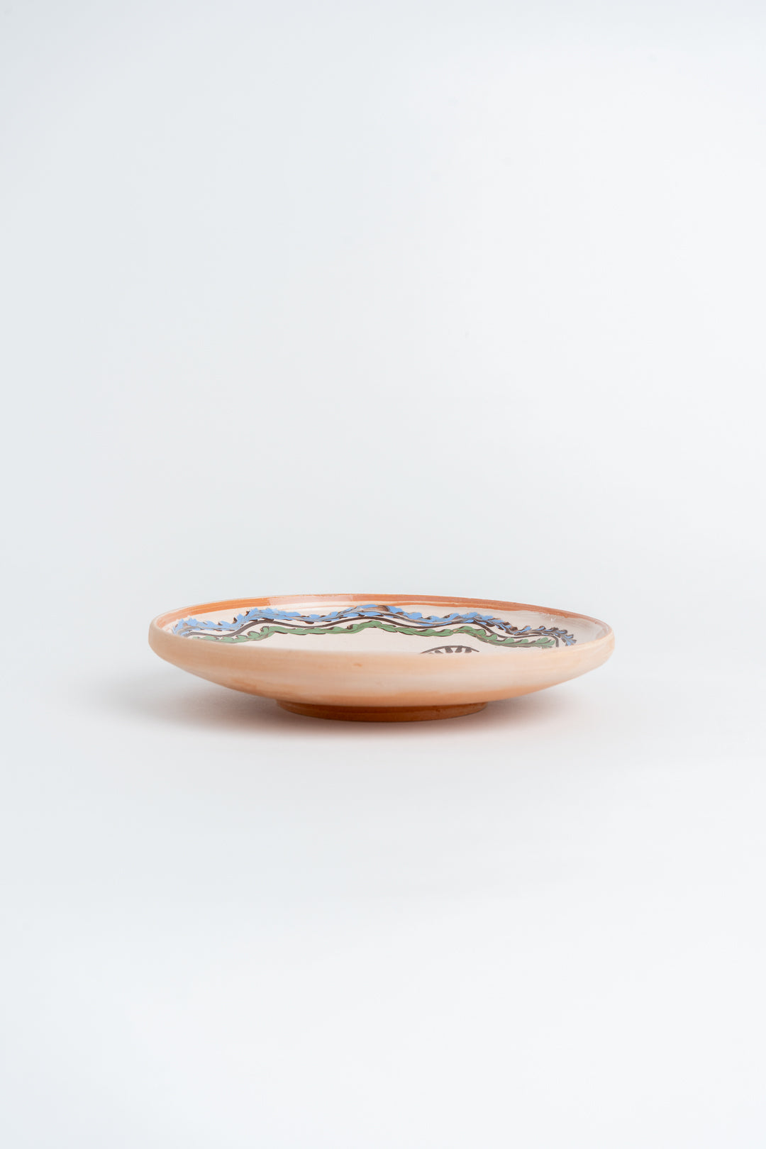 Celebrating traditional Romanian folk pottery, the rooster motif is hand painted using natural glazes made from local clays and minerals. Its 17cm size makes it the perfect size for a serving dish, side plate or simply as a decorative item for the home.